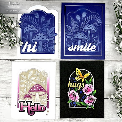 It's so interesting seeing how the white ink looks on the EF after and before running it through the machine. And your BLUE choice :) makes the lovely mushrooms design just pop! Love also the kraft/pink one, so sweet.